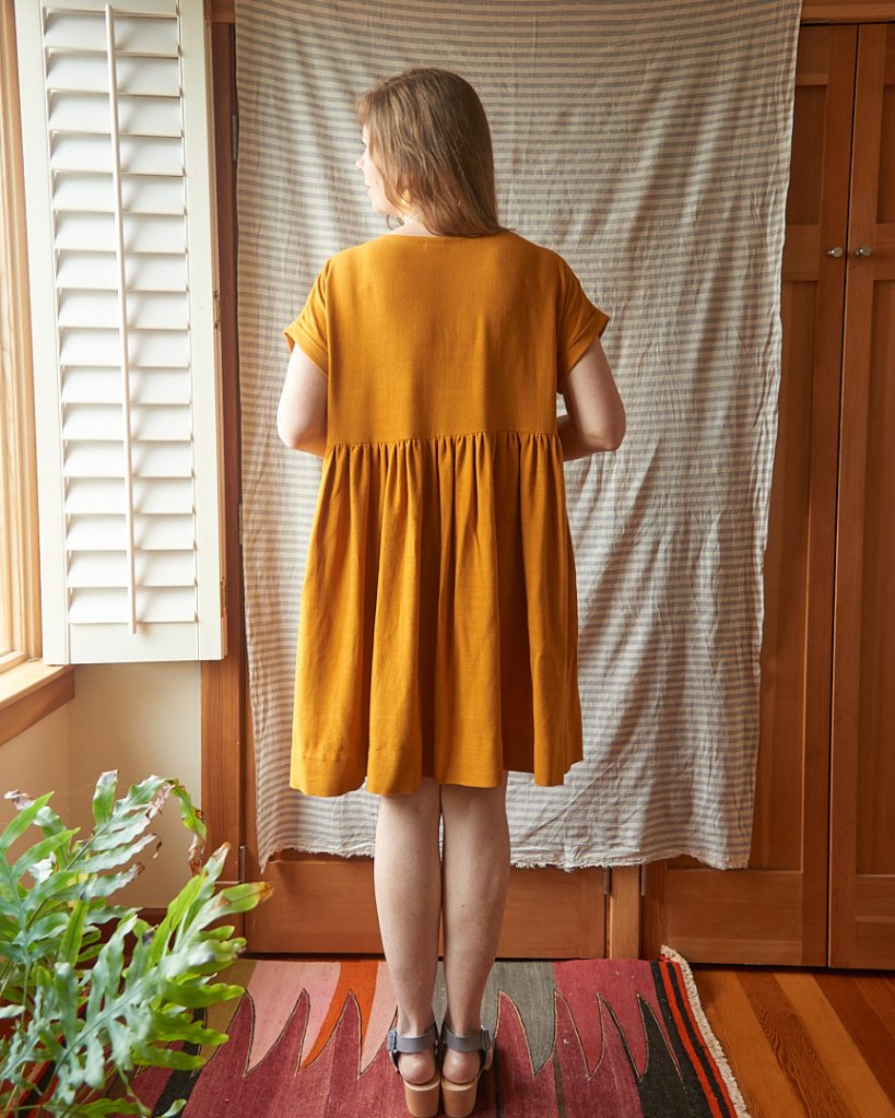 I’ve been slow sewing this summer, gravitating toward straightforward makes that I can tackle in 5-10 minute chunks. This Elizabeth Suzann Georgia tee hack is my latest project. I started with the ES Georgia tee, cropped it, and added a gathered skirt for a breezy summer dress. Of course I added some fancy pockets at the last minute, so this dress was not as simple to construct as it could have been, but I do love the results.