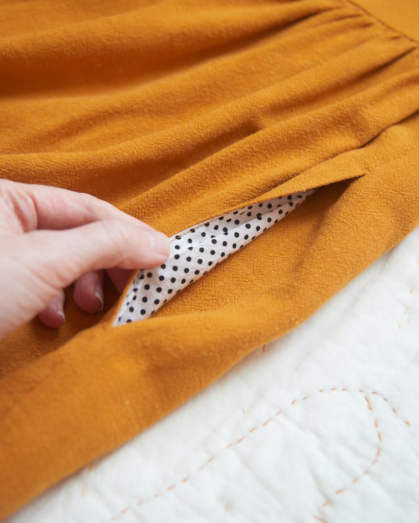 I could have stopped there, and this would have been a very straightforward project. But of course I had to complicate things. I decided to add waist-anchored, French seamed, inseam pockets to this dress (the perfect pocket trifecta). I used this tutorial from Irena Paukshte, which I’ve used many times before and is far superior to the more common method to add French seamed inseam pockets. I added a waist anchor because I cannot stand floppy pockets. This topic deserves an entire post unto itself so stay tuned for a deep dive on pocket construction in the future.