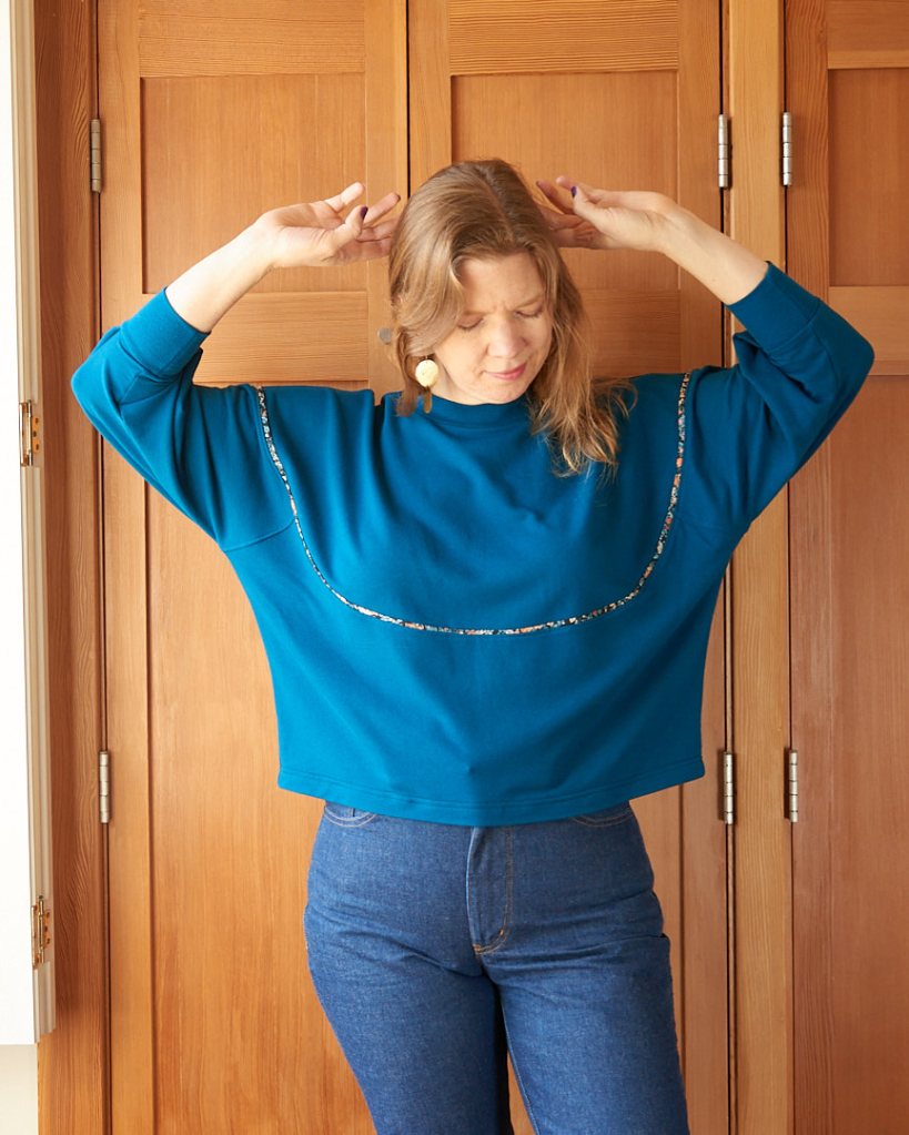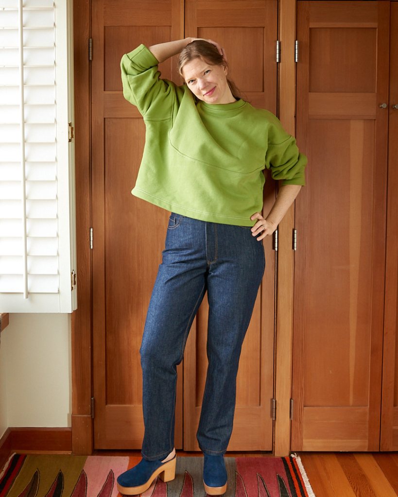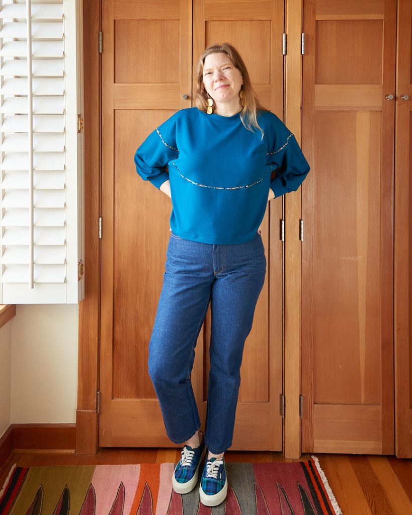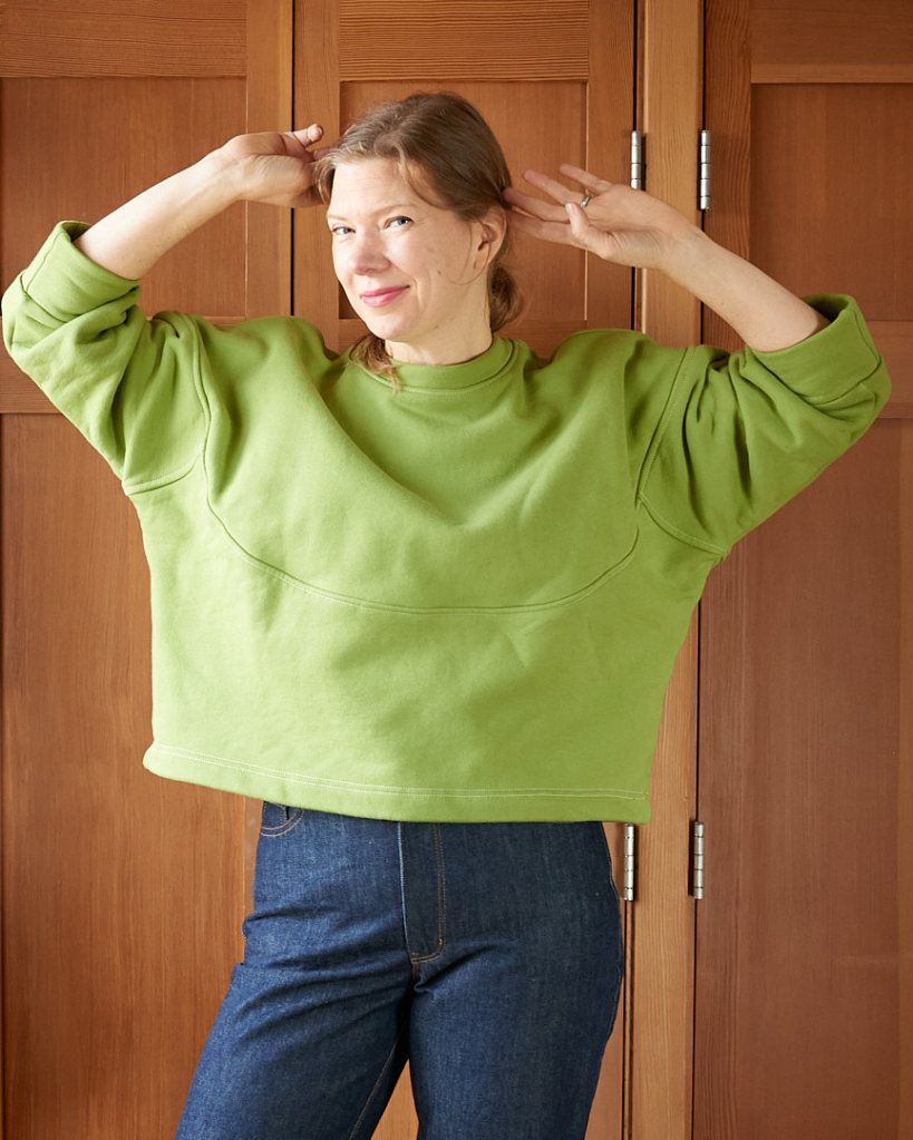 For me, the cropped sleeve is what keeps the oversized volume of the Wren in check. Showing just a little bit of skin at the wrist balances all that fabric in the body, and it makes all the difference for the silhouette.