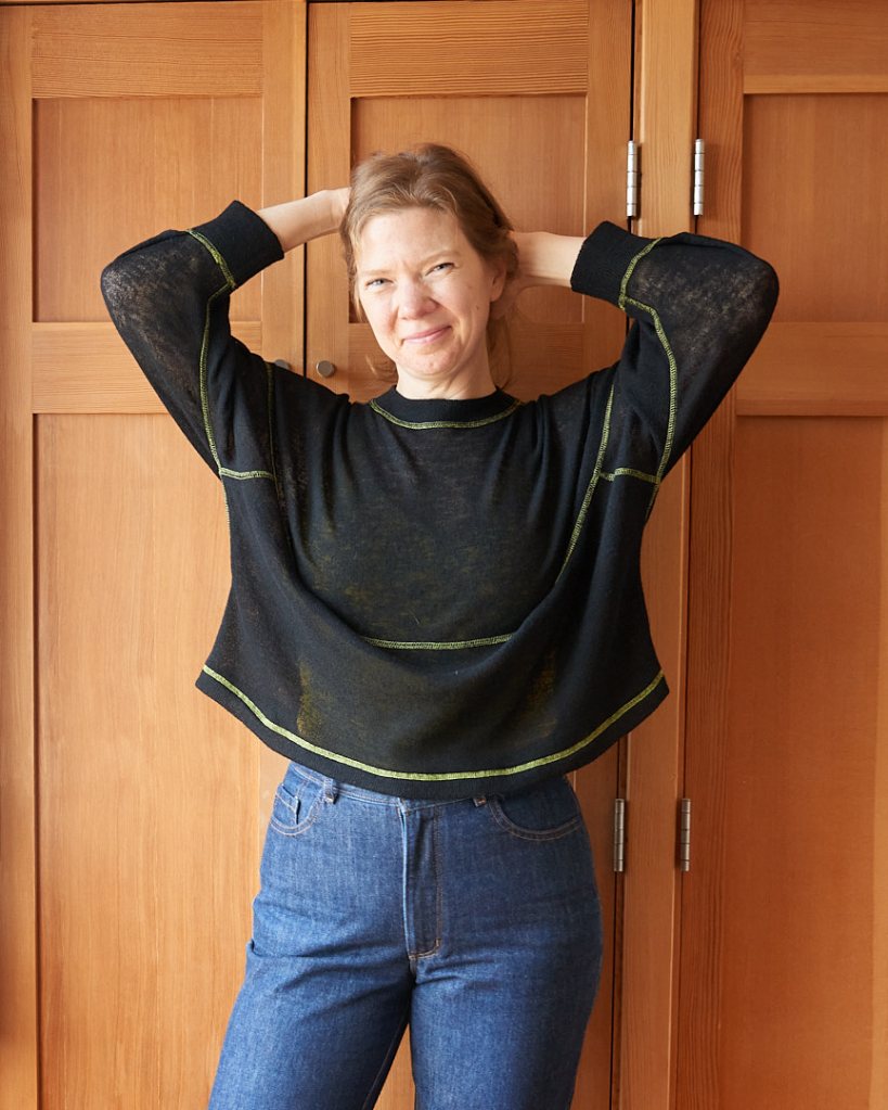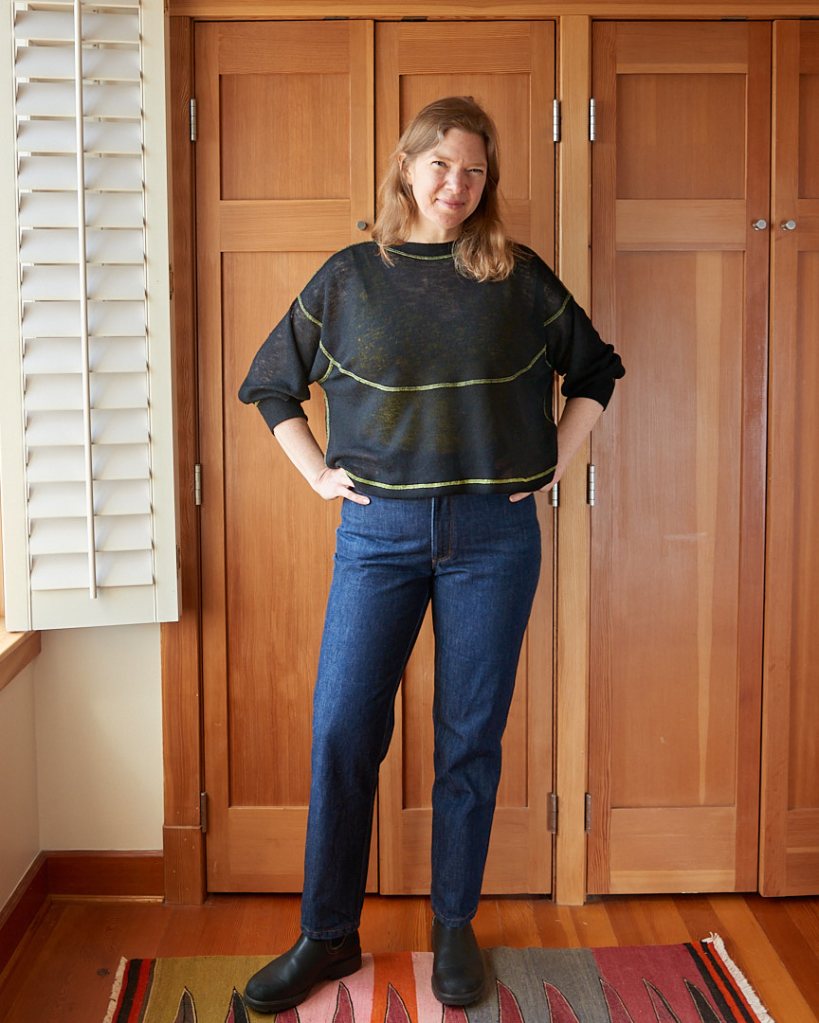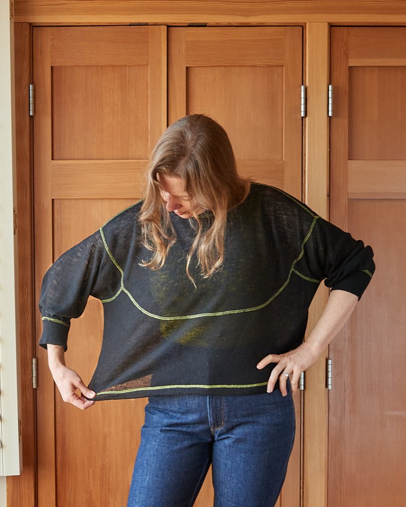 Just for fun, I made a semi-transparent Wren out of a deadstock wool mesh that I had lying around. Even though I don’t wear much black anymore, this wool version is a close second to my favorite heavyweight green Wren, and they are VERY different.