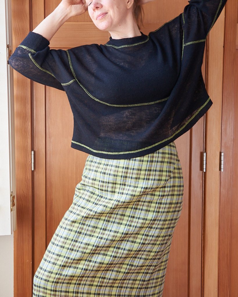 If you’ve followed me for a while, then you know that I have been trying to become a “skirt person” for a while now. I think I’m getting closer to figuring out what silhouettes I want to reach for — the fewer ruffles and gathers, the better. I love the cottage core aesthetic on other people, just not on me. So the column skirt seems like it should be my ideal skirt design: low volume and no gathers. This design can lend itself to a dressier, preppier look easily, but I like a funkier, more casual styling of this minimalist design. Here are a few examples: