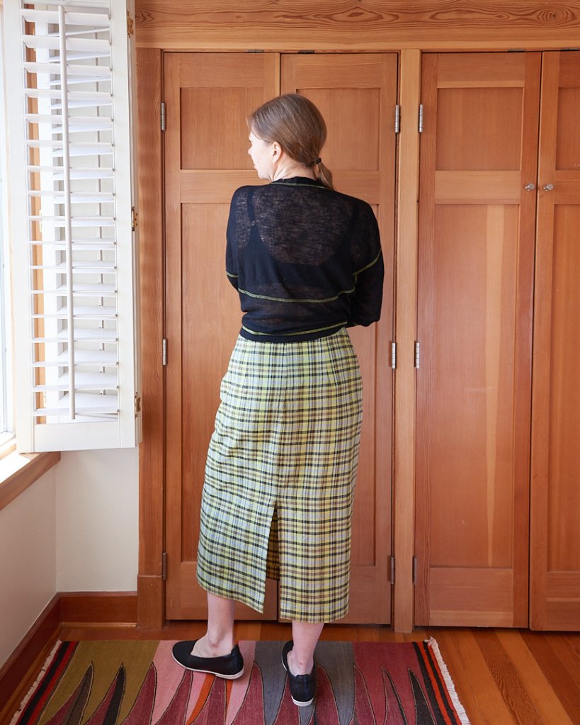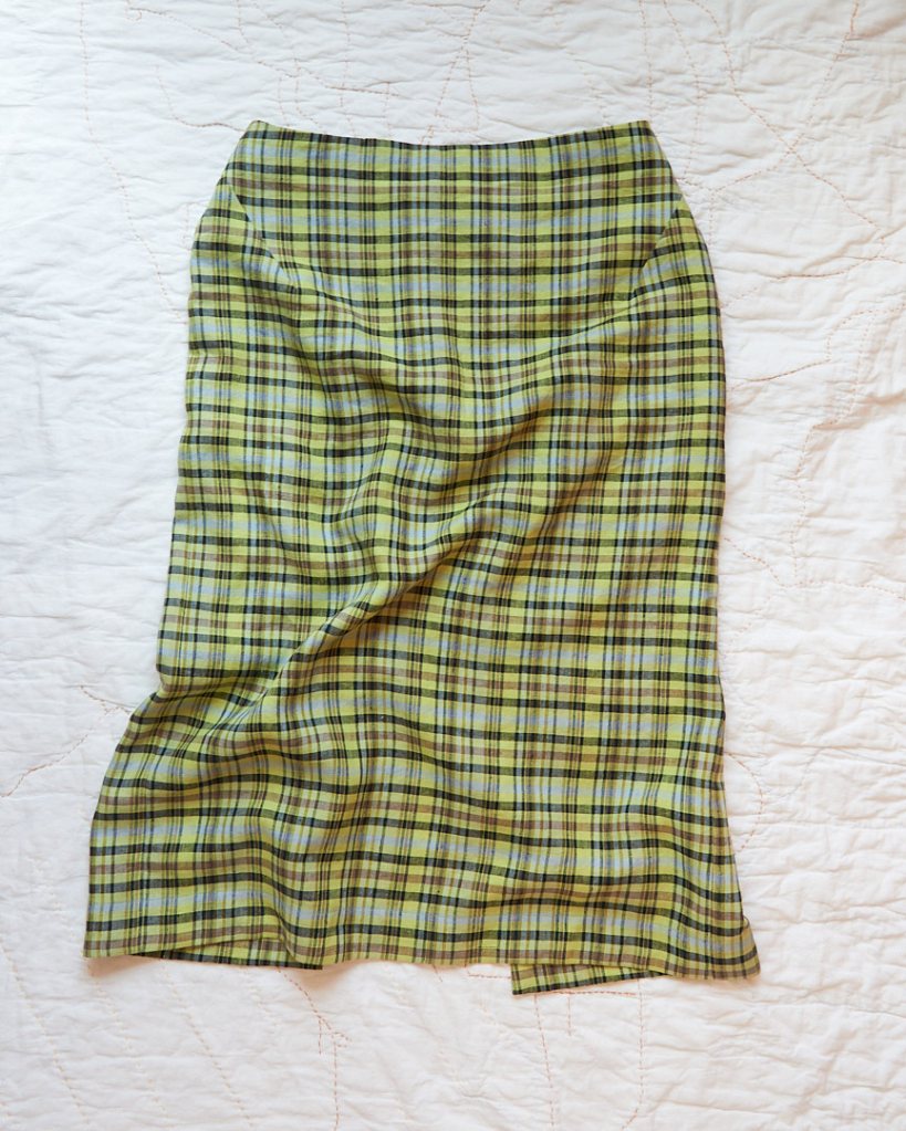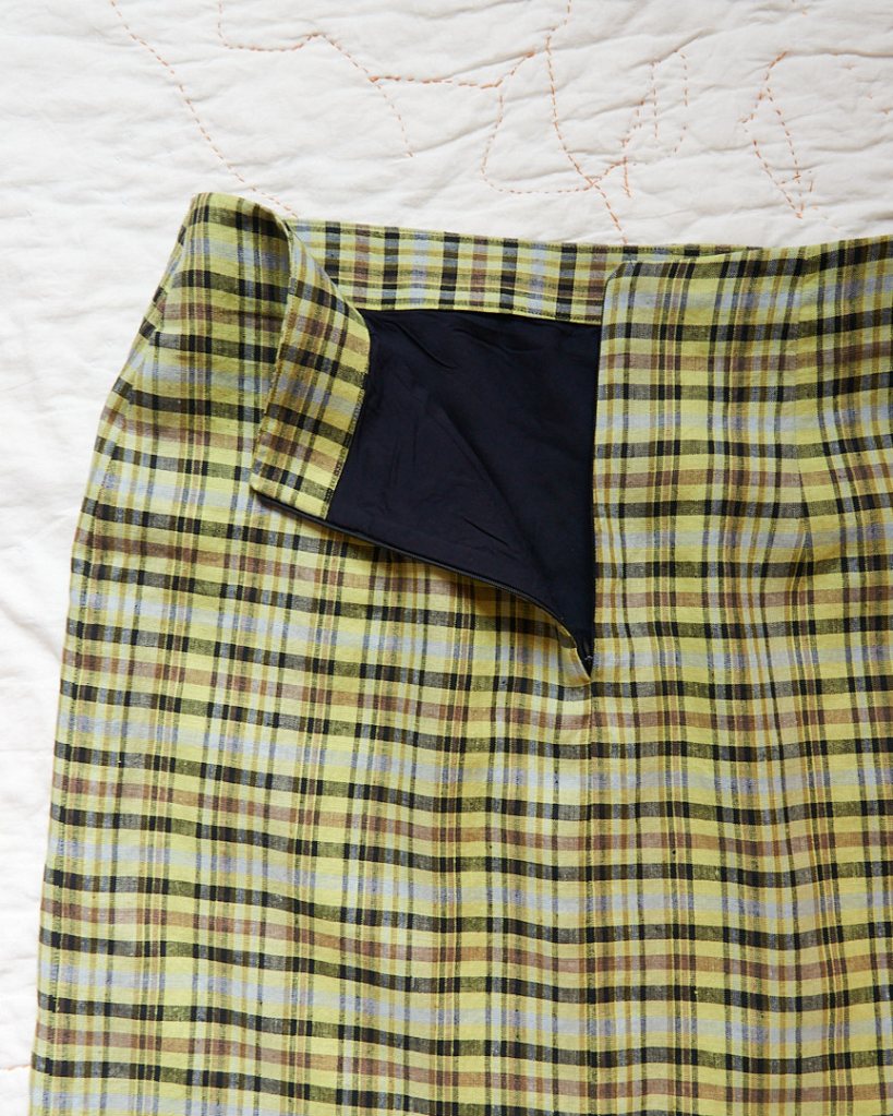 My final Teague skirt has 1.25″ of ease at the waist and around 4″ of ease at the hip. For me, this is about the minimum amount of ease that I’d want for a linen skirt.