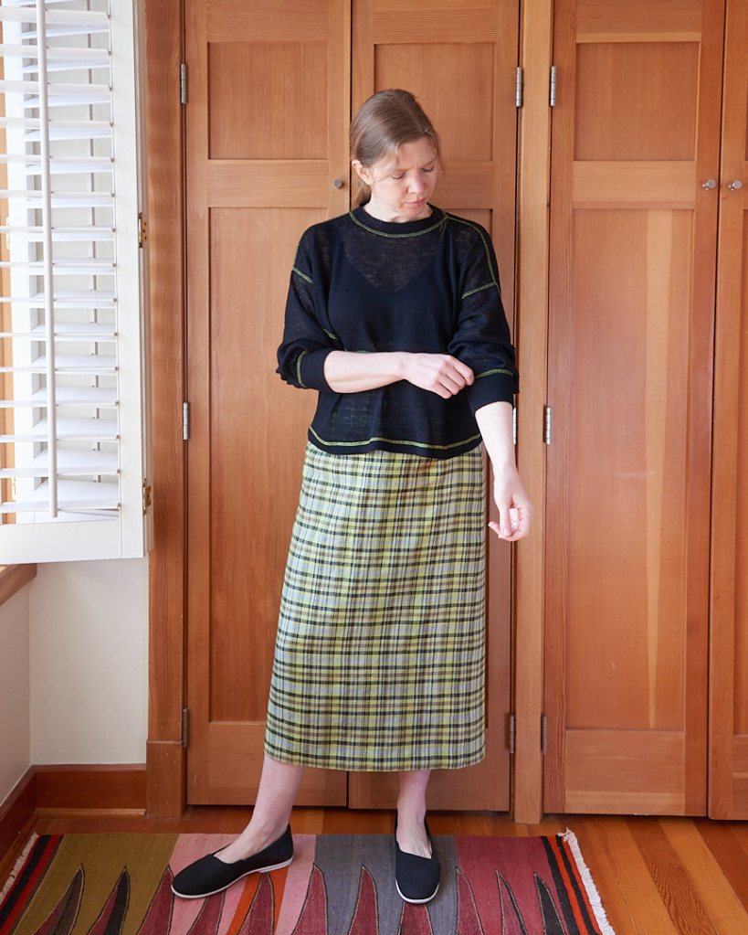 I really love this linen Teague skirt, and I was surprised how well this woven version turned out considering that sizing up was the only change required to translate the design from a knit to a woven. I think there will be a few more of these in my future this summer, maybe a denim version, too!