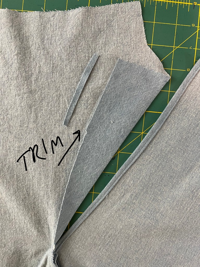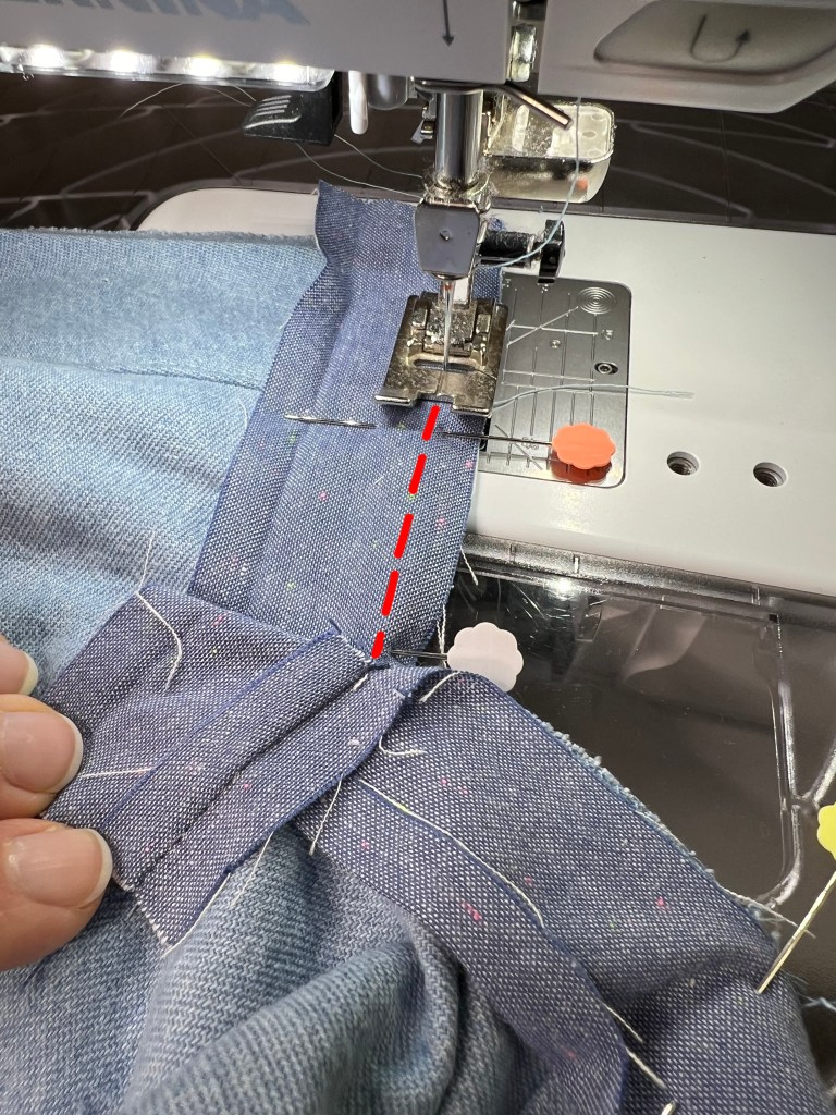 - I found it easiest to sew the hem dart by marking the stitching line in chalk first.