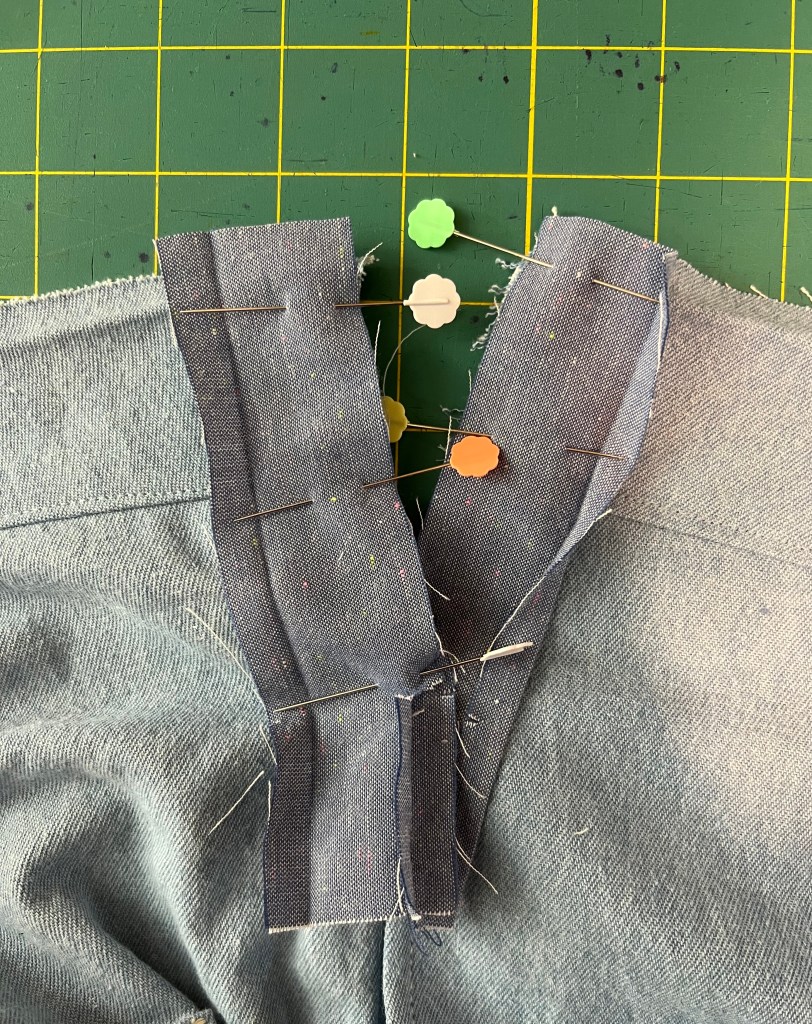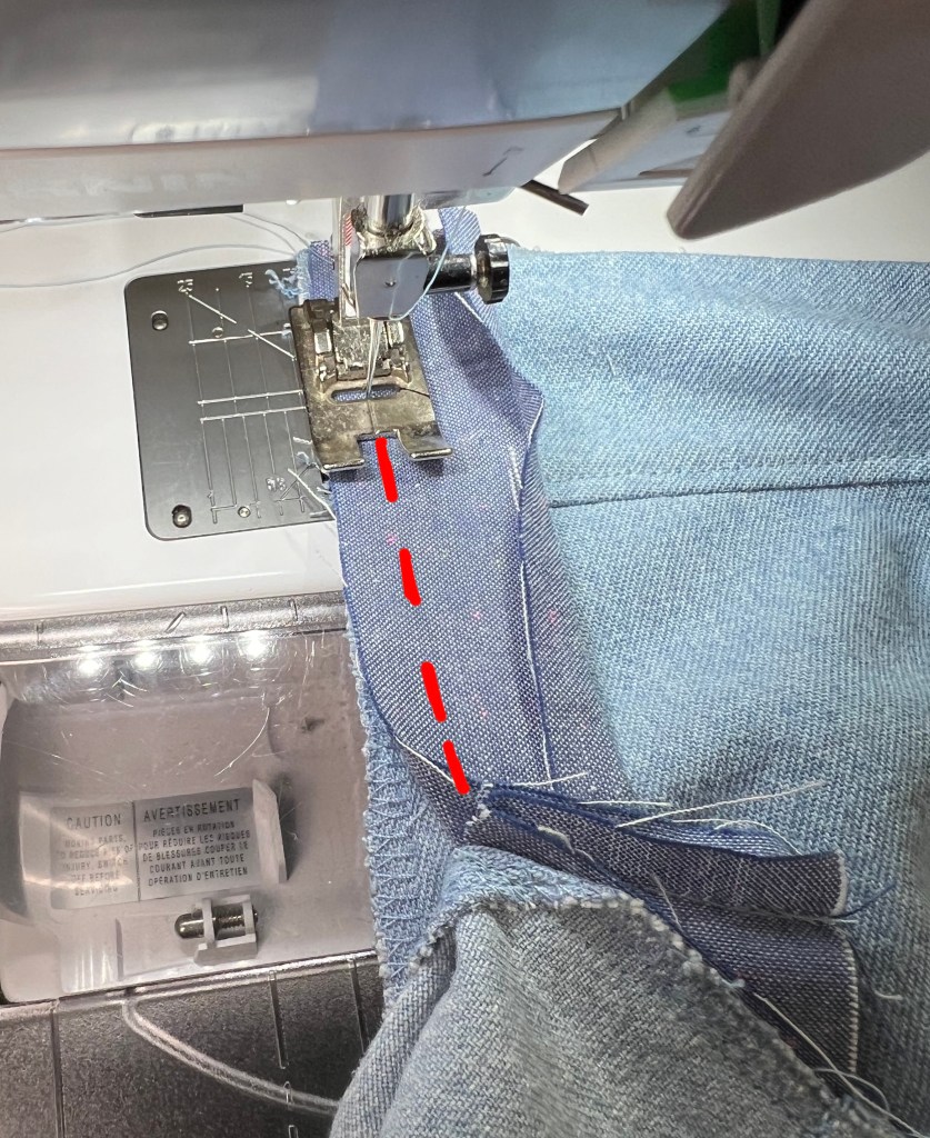 - Repeat for the other side of the facing, making sure not to catch the seam allowance from the front of the pants this time: