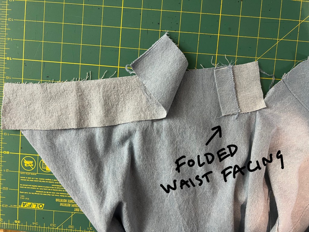 - I ignored the notches on the little waist facing piece — supposedly these indicate where to fold the facing but I found that these markings did not make sense and the fold they created was not the right size.