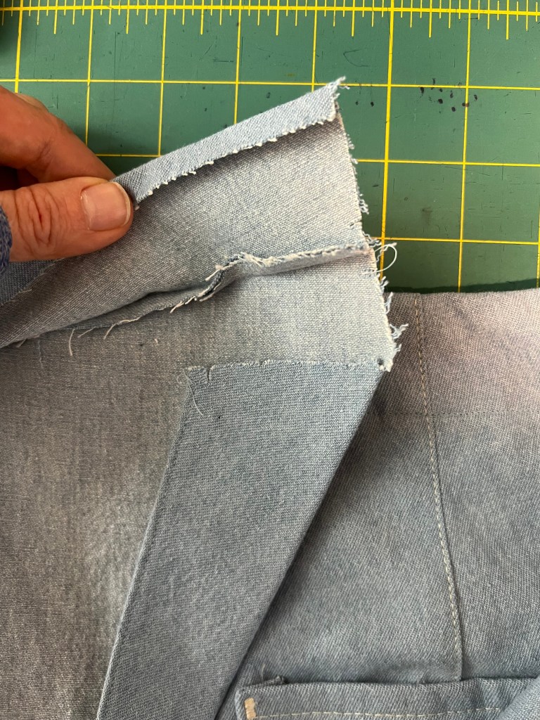 - I ignored the instructions for finishing the bottom of the pocket bag with a French seam (step 4c and 4d). Instead I used a 1cm seam allowance and then overlocked for a less bulky finish that is less likely to show through on the front of the pants. My fabric for these trousers was relatively heavy (8-10 oz denims), so thinner fabrics might do just fine with a French seam here.
