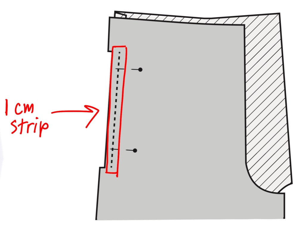 - After sewing the two facings together, press a 1cm seam allowance into the unsewn long edge of the side slit facing.