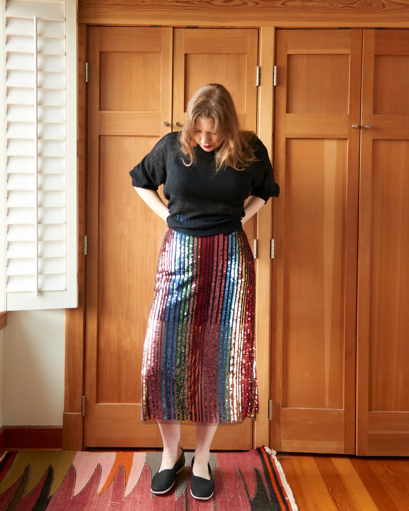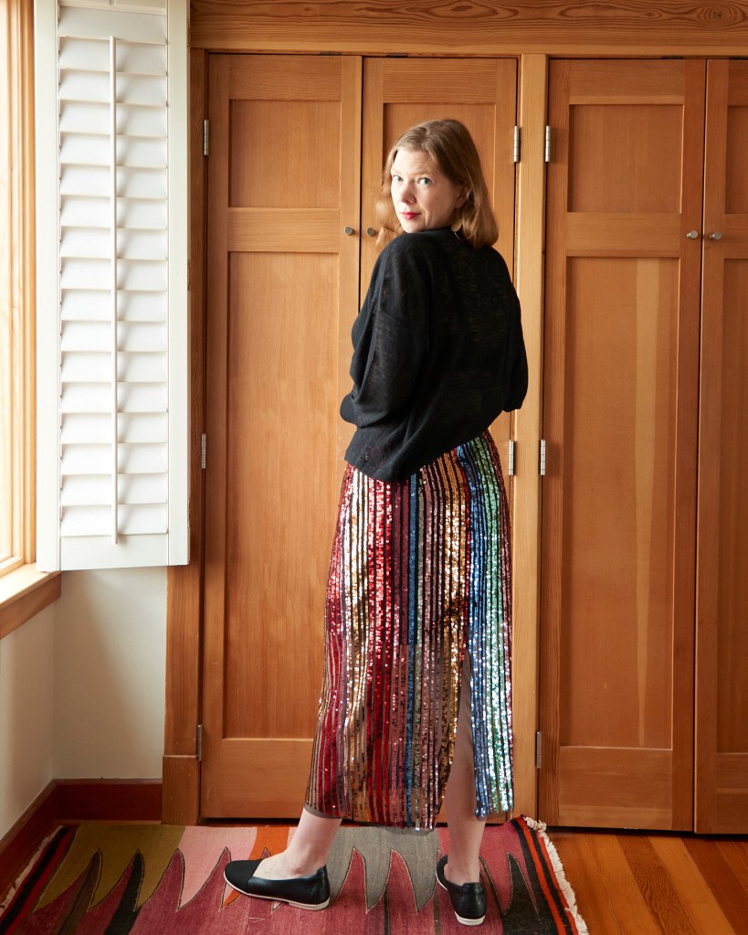 After some Pinterest research, I settled on the idea of a midi-length column skirt. I particularly liked the idea of pairing a glittery skirt with a casual top and shoes (I live in Seattle after all, we don’t do formal wear here). I’d already made a Teague skirt before, so it seemed like the obvious choice.