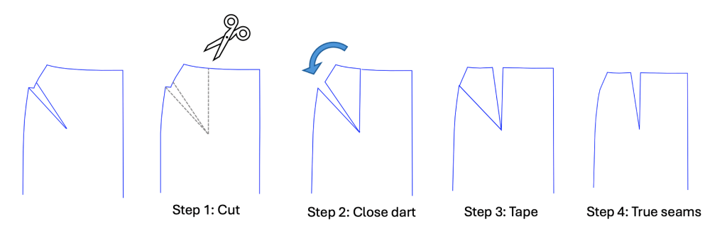 Above is an overview of how I rotated the dart. There are many in-depth guides on how to rotate bust darts, and I just followed the same principles here.