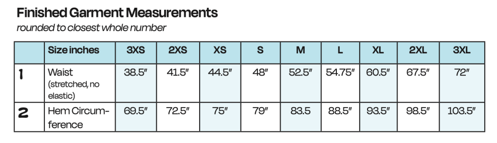 You may also notice that the finished garment measurements chart is missing some of the typical garment measurements, like a waist to hem length. The reason is because the Henrietta skirt is a “demi-pattern,” so you purchase the pattern pieces for the curved gathers at the hip, but then you need to do a bit of math to draft the rest of the skirt panels yourself. You choose what length you want to make the skirt, and this is why this measurement is not included in the size charts.