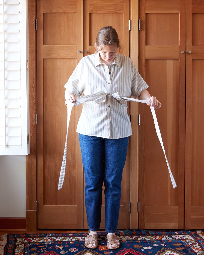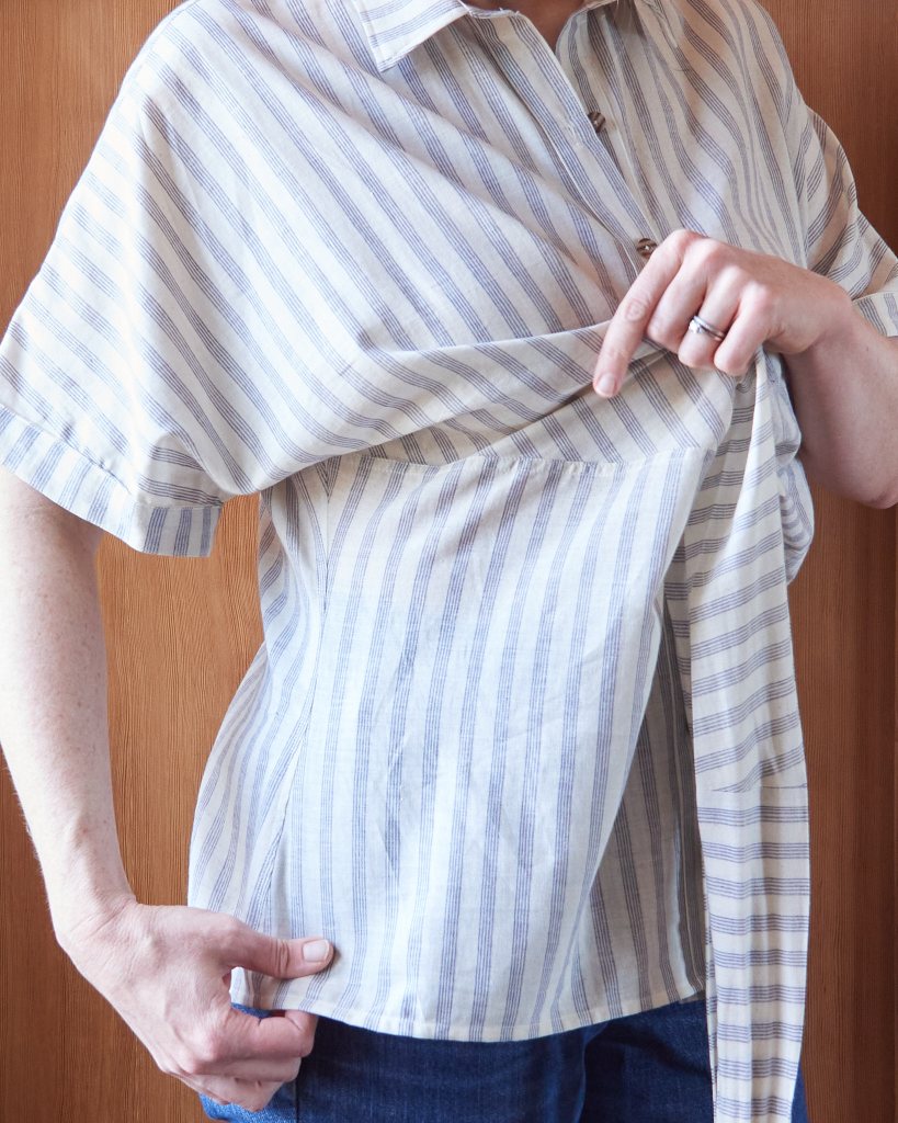 I love a shirt with clever drafting and this pattern delivers exactly that. Most tops like Townsend have side ties that are sewn into the side seam and wrap the body from the side. Not true for Townsend.