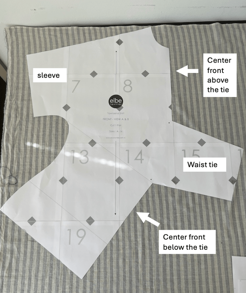 As I mentioned above, the drafting on this top is very clever, and the tie is essentially “grown on” in the front bodice, rather than being a more traditional tie attached to the side seam. However, this drafting has some consequences for using fabrics that have geometric patterns, like stripes or plaids.